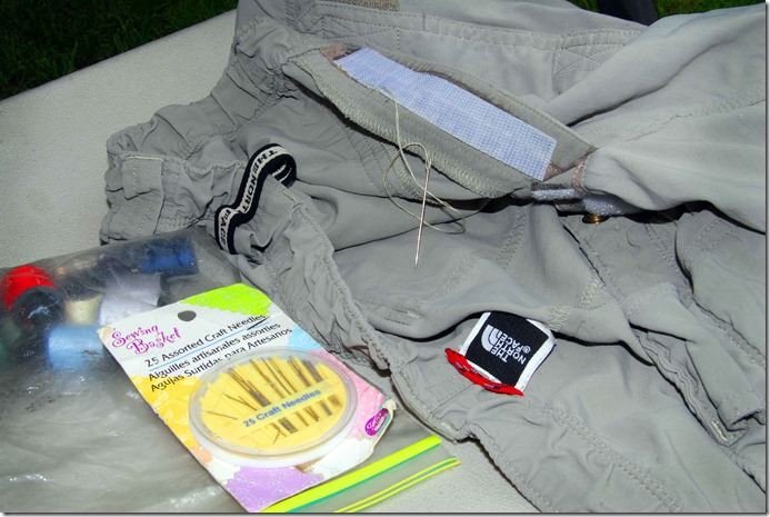 But my favorite campsite activity is sewing. Nothing beats replacing the zipper on a favorite pair of hiking shorts with velcro.